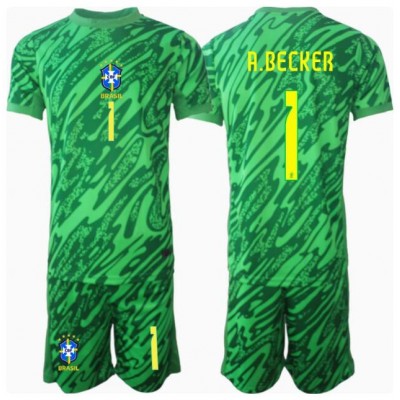 Brasilien Alisson Becker #1 Målvakt Hemmadräkt Barn Copa America 2024 Kortärmad (+ Korta byxor)
